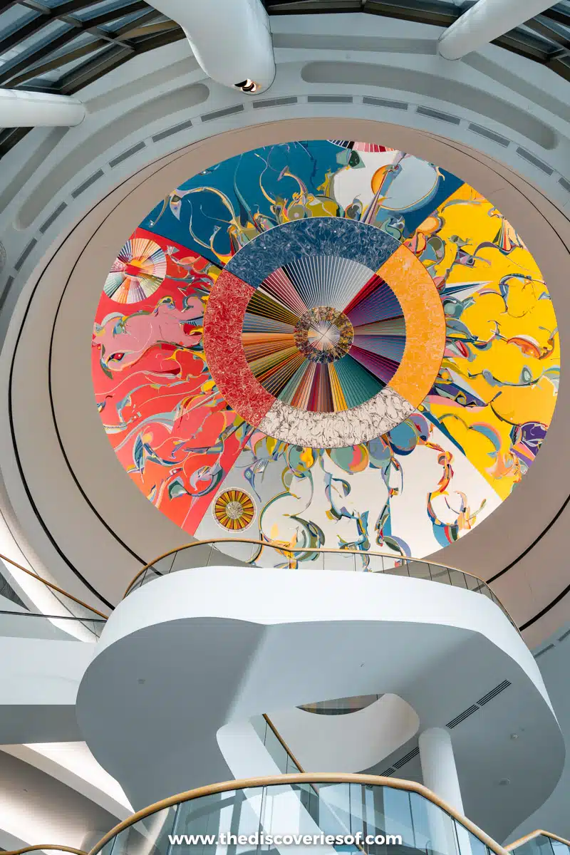 A highlight for me was seeing Spirit of Haida Gwaii by Bill Reid, a Haida artist who described the trying but rewarding canoe journey that he sculpted into a near-living form. Another gorgeous piece of artwork is Morning Star, just down the Grand Hall. 7 stories high, it’s a mural portraying 4 colours that symbolise the seasons or stages of life.