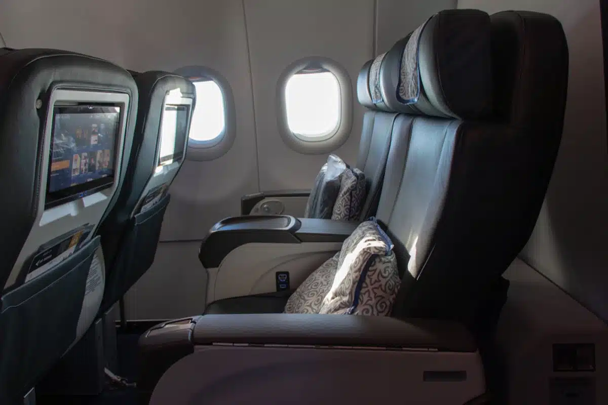 The next class we’re going to talk about is business class. You can think of it as first-class light. You often have a larger seat and improved amenities that feel almost like you’re flying first-class.